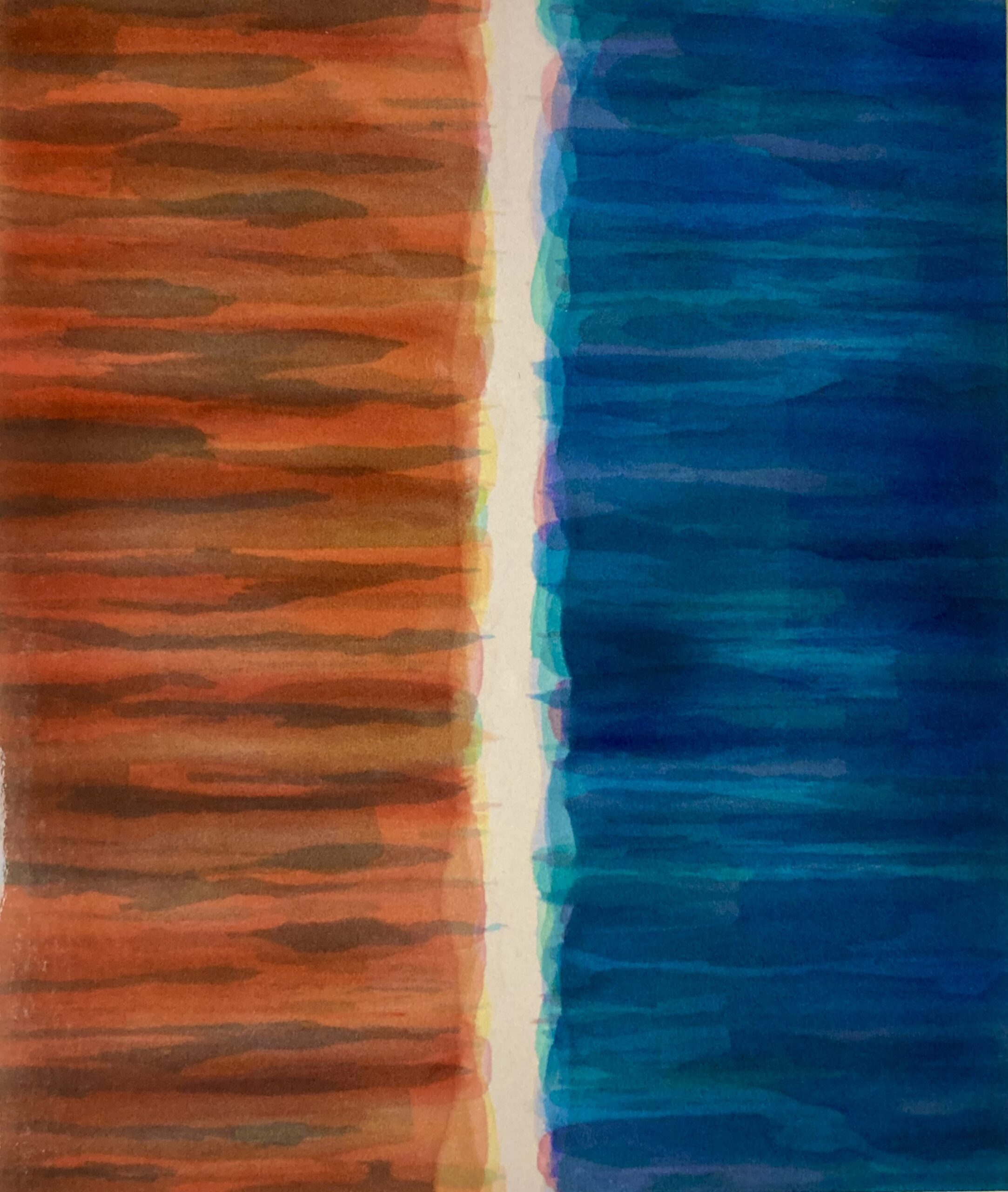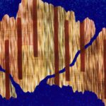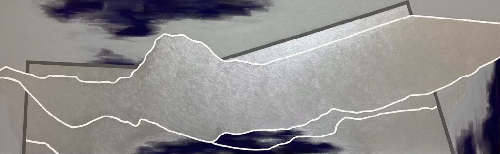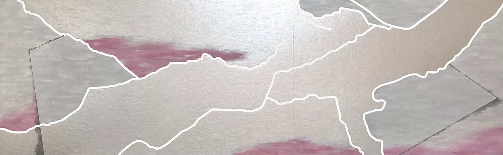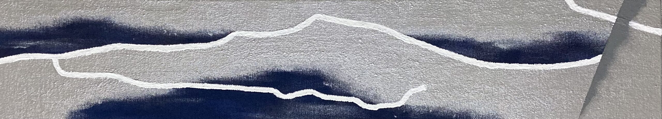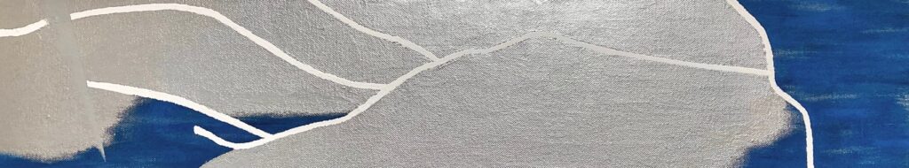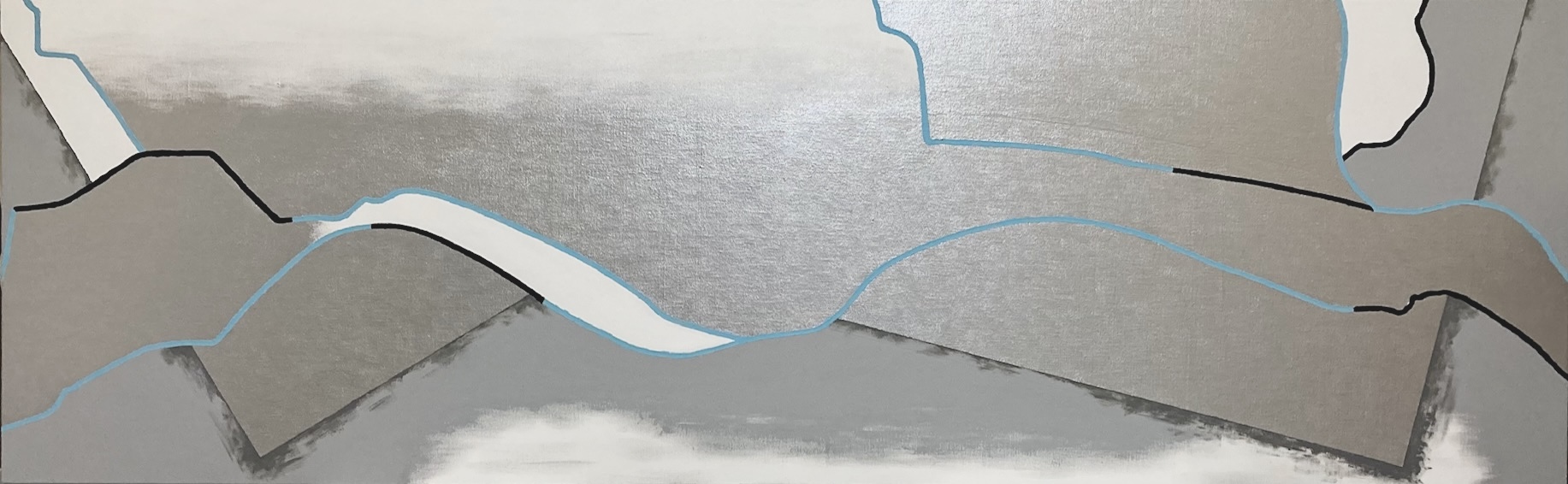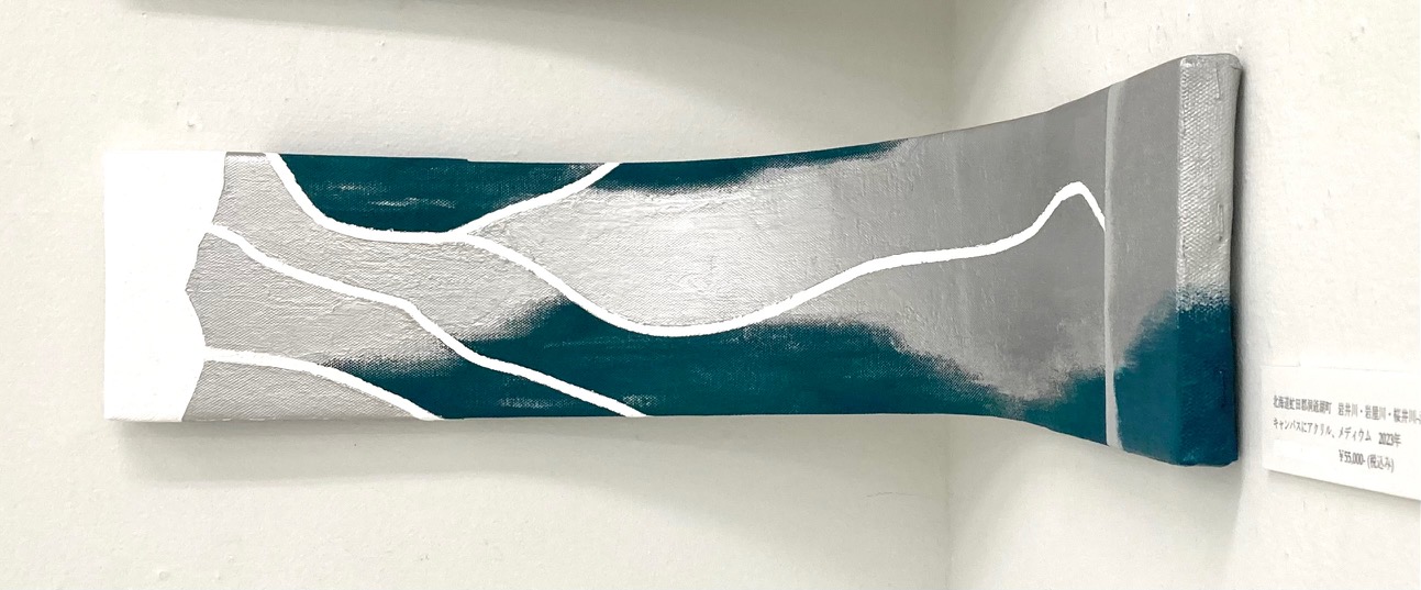 地図上の川は記号化されており、まるで抽象のようです。その抽象のような具象のような曖昧な感じが魅力で、川をモチーフにしています。 また その曖昧さは、“2次元のような3次元のような空間を表現” する中核的芸術絵画の本質に合っています。